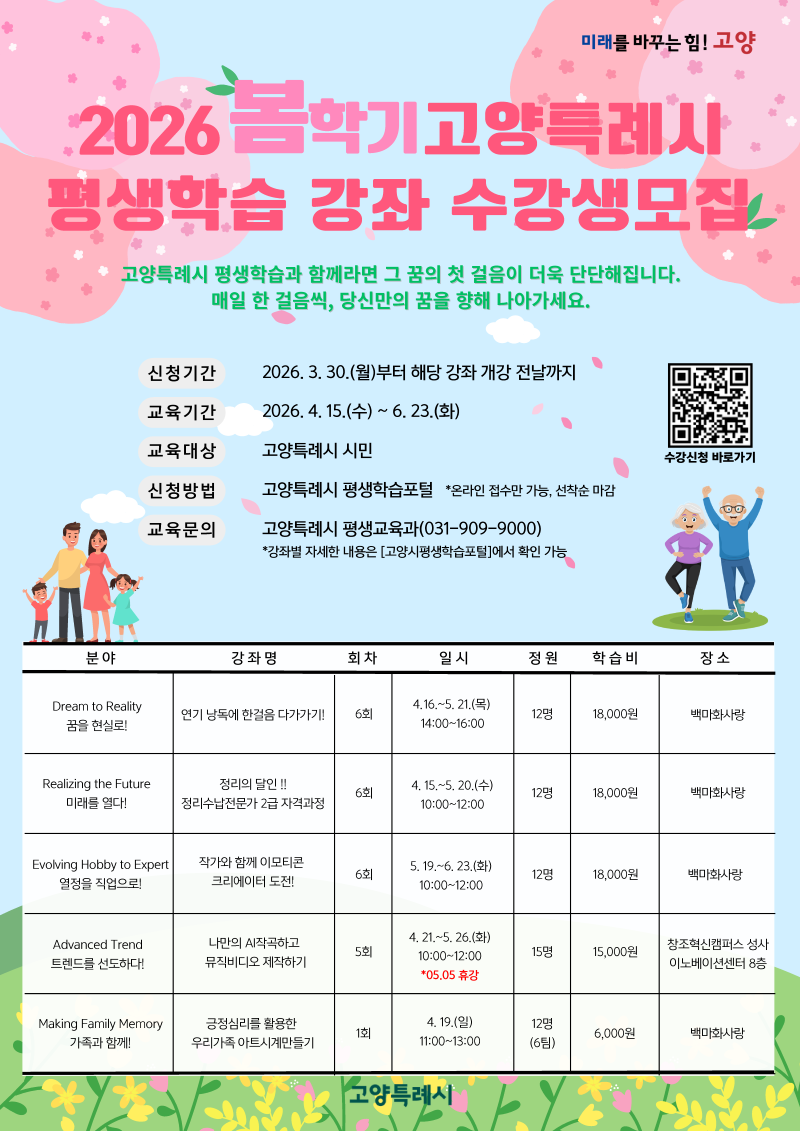자기계발, 전문지식 습득, 취업·역량 강화를 위한 소규모 맞춤형 시민 강좌 운영