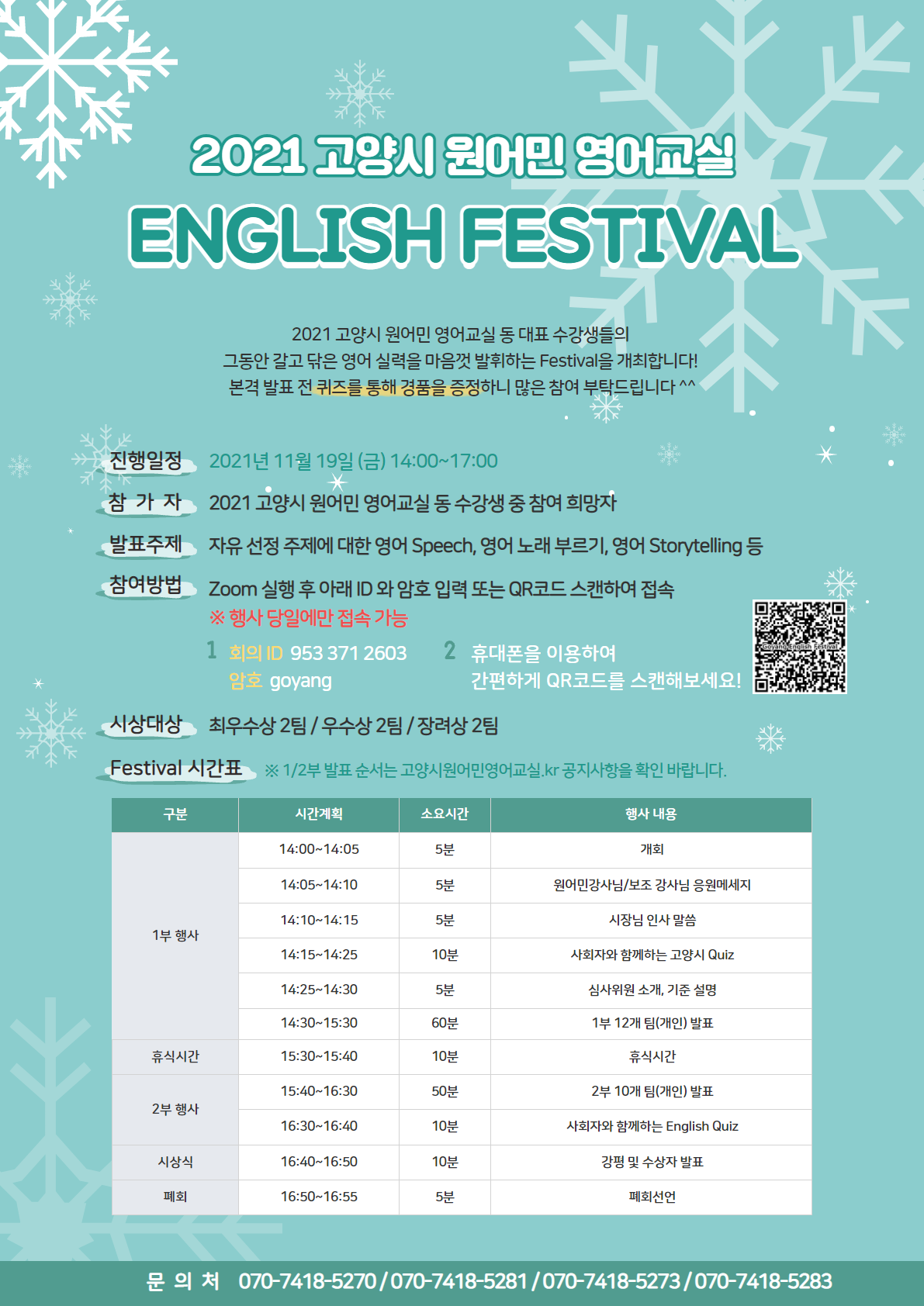 2021 고양시 원어민 영어교실 ENGLISH FESTIVAL 시간 및 발표 순서