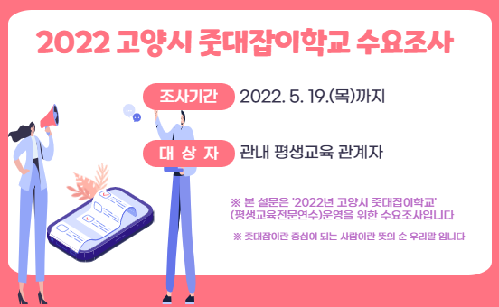 평생교육관계자 전문연수인「2022년 줏대잡이 학교」운영을 위한 수요조사를 실시합니다.