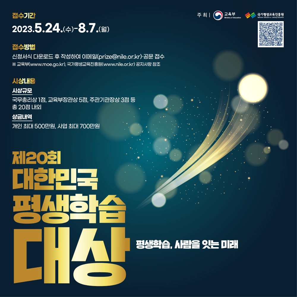 「제20회 대한민국 평생학습대상」의 주인공이 될 여러분의 많은 관심과 참여 바랍니다.