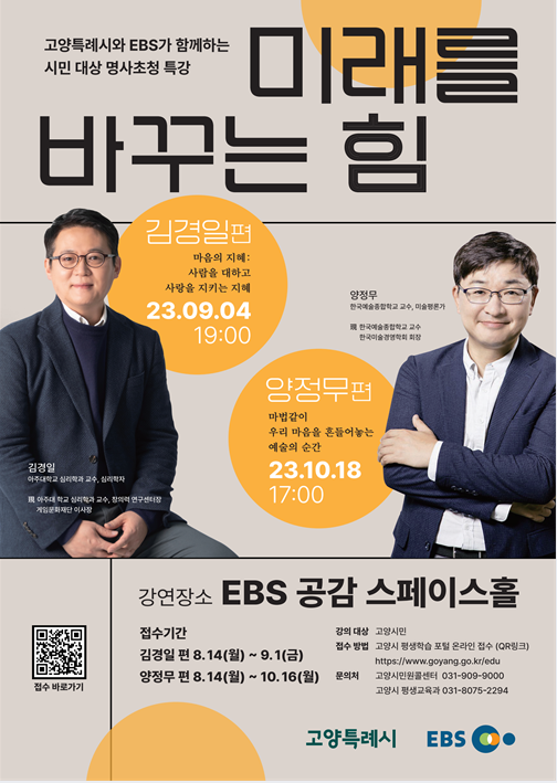 2023년 고양특례시-EBS 공동 명사초청 특별강연(2차, 3차) 참여자를 모집합니다.