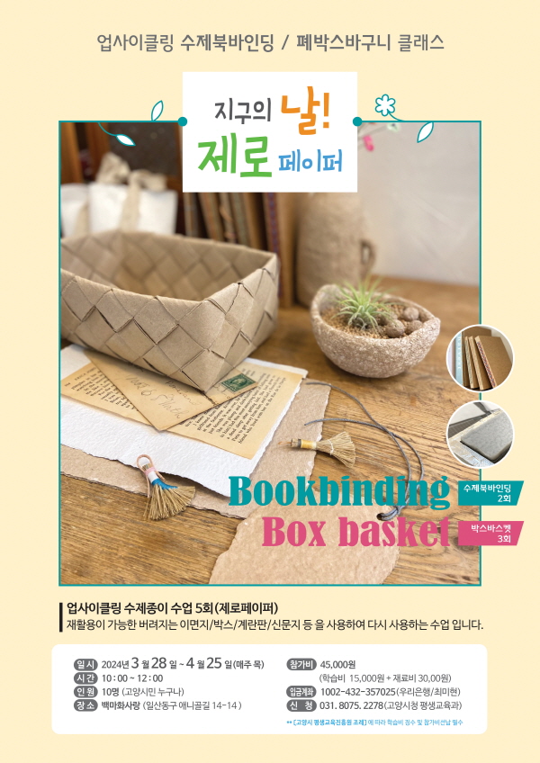 강의명: 지구의 날! 제로 페이퍼 - 업사이클링 수제북바인딩 & 폐박스바구니 클래스