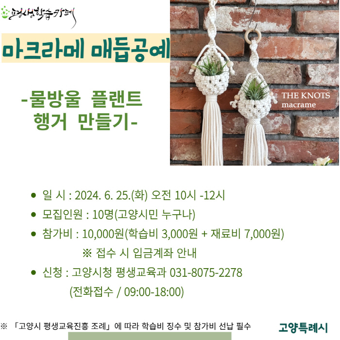 2024년 고양시 평생학습카페(백마 화사랑) 이벤트 : 매듭공예