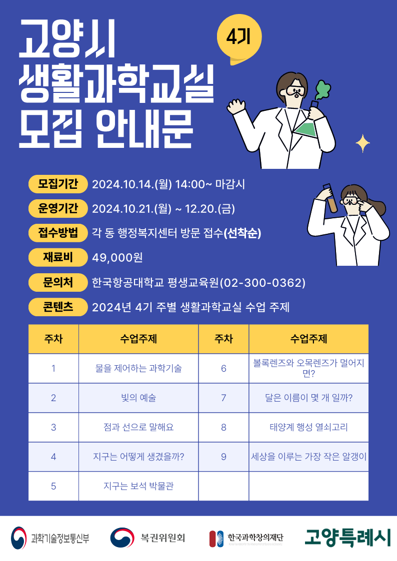 2024년 4기 고양시 생활과학교실 수강생 모집
