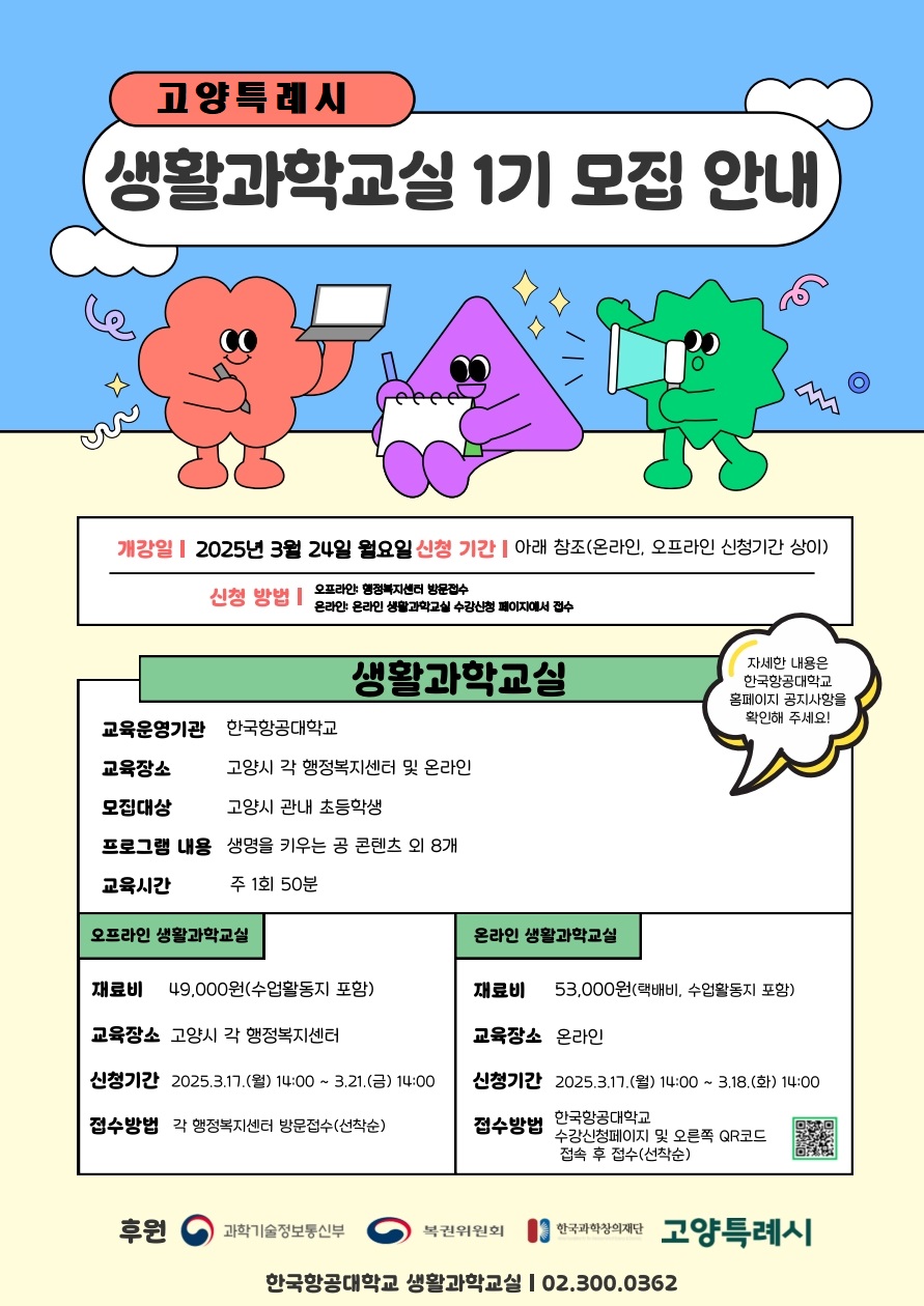 2025년 1기 고양시 생활과학교실(온, 오프라인) 수강생 모집